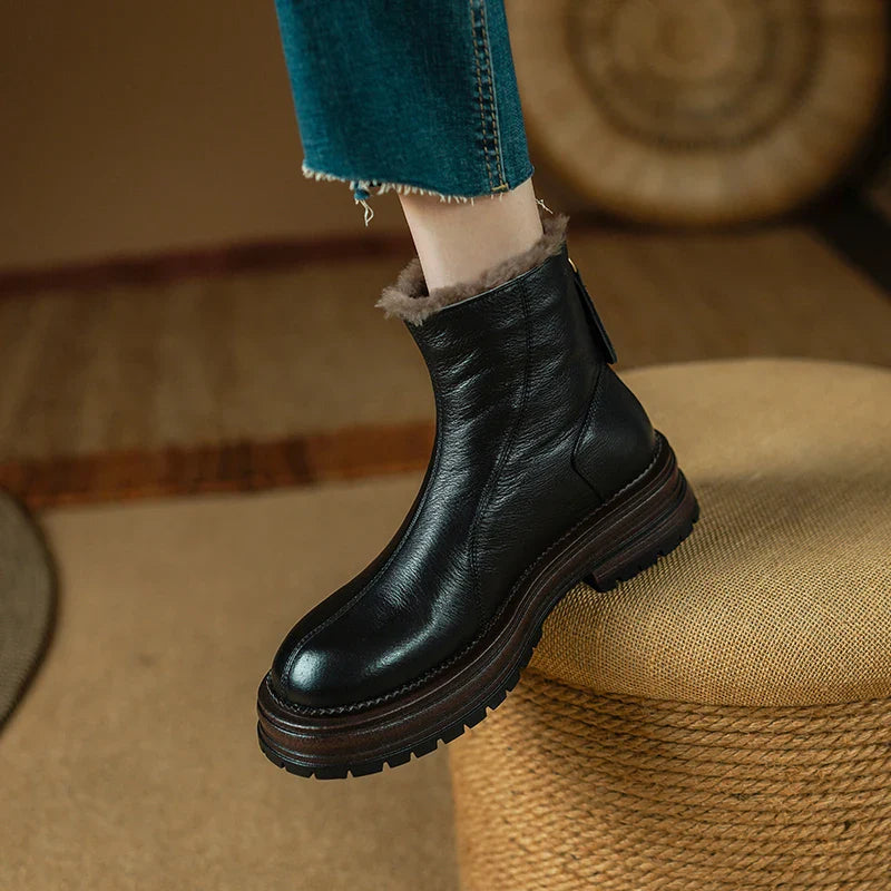 Solenne Genuine Leather Boots – Winter Luxe Comfort